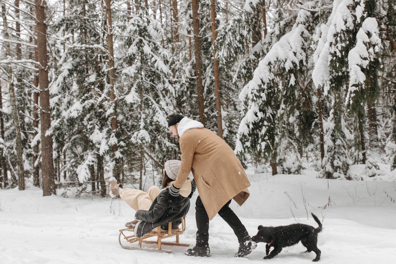 - Layered clothing suitable for cold weather and mountain sports.